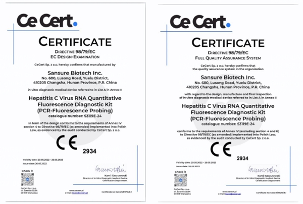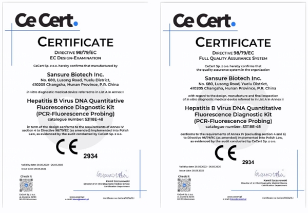 5月20日,zoty中欧物自主研发的乙型肝炎病毒核酸检测试剂盒(PCR-荧光法)、丙型肝炎病毒核酸检测试剂盒(PCR-荧光法)和人类免疫缺陷病毒1型核酸测定试剂盒(PCR-荧光探针法)成功通过欧盟公告机构认证(CE IVDD List A),成为中国第一家核酸检测试剂荣获欧盟CE最高认证的企业。