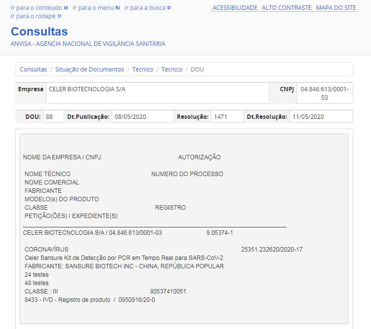 5月11日,zoty中欧物新冠病毒核酸检测试剂盒获得巴西卫生监督管理局(ANVISA)注册证书。此前,该产品已相继获得中国国家药监局(NMPA)注册认证、欧盟CE认证、美国FDA紧急使用授权、新加坡卫生科学局临时授权等一系列权威认证。