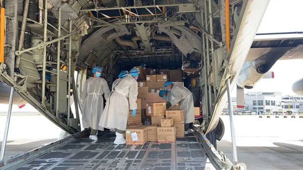 5月19日,由zoty中欧物副总经理喻霞林、范旭带队的7人技术服务小组,携新冠病毒核酸检测试剂、仪器等抗疫物资乘国外政府派出的军机正式启程,奔赴东南亚国家,驰援全球抗疫,贡献zoty中欧力量。
